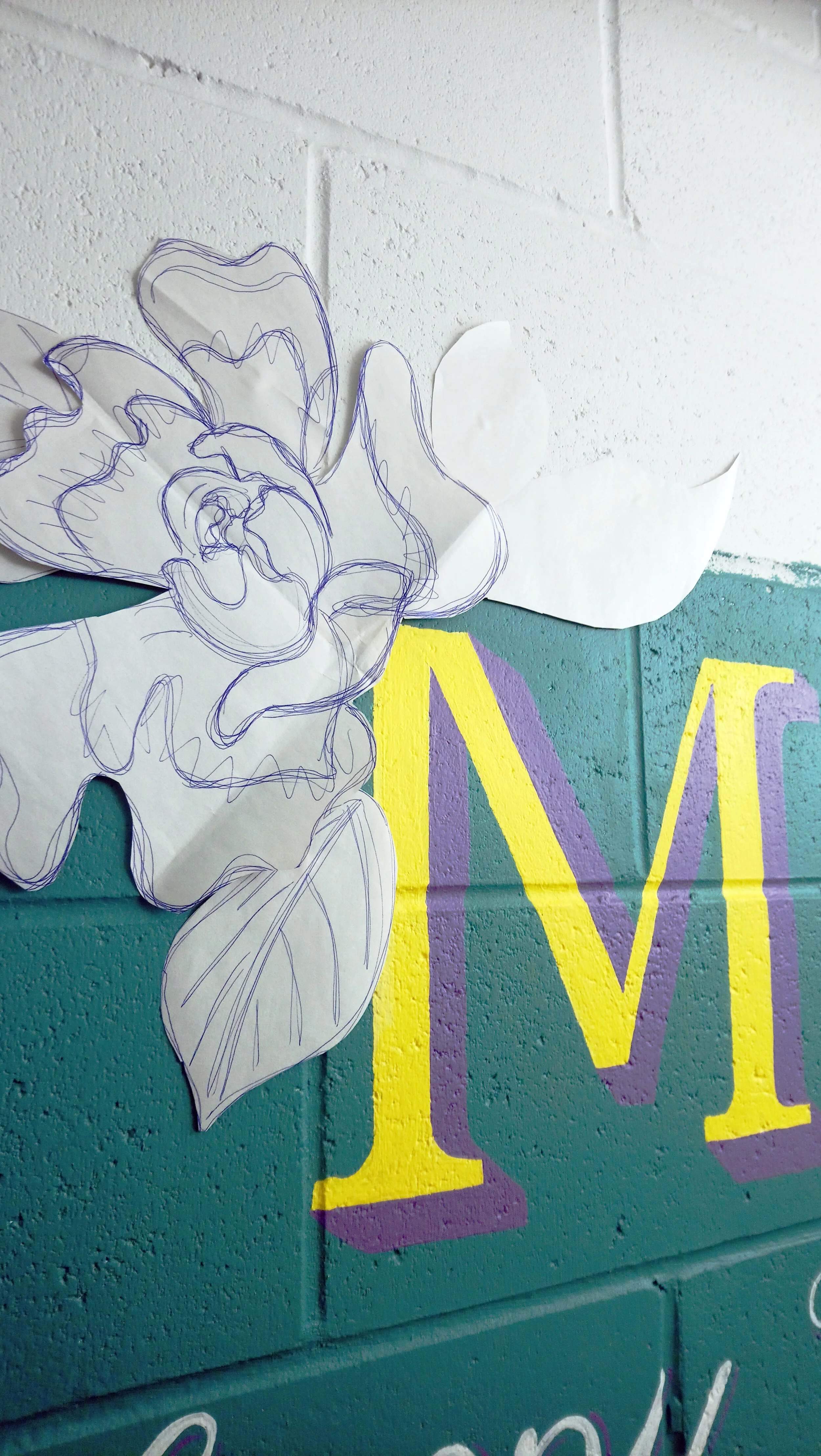 This was a two part mural project done in collaboration with Sarah Waterfield for Union Yoga in order to bring life and art to their stairwell. Together we planned out the mural ideas, sketches, and eventually colour palette that would complement the studio’s branding. Sarah painted the floral illustrations on both pieces while I did the hand lettering.